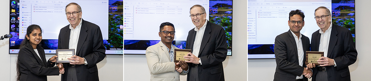 The Gower fellowship provides full stipend support for summer and a monetary award to each student. This year’s Gower Fellows, Samsul Arafin, Peshala Jayamaha Hitihamillage and Zahid Siraj, presented their findings at the symposium in the presence of Bob and Beth and their daughter Allison. The symposium also includes a poster presentation highlighting the research activity in the school,