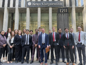 Members of the Saluki Student Investment Fund visited The Wall Street Journal/Dow Jones and Bloomberg during their April 2025 trip to New York City. For many of the 17 students, it was their first time in New York — an unforgettable opportunity made possible through the support of Omar and Carol Winter.
