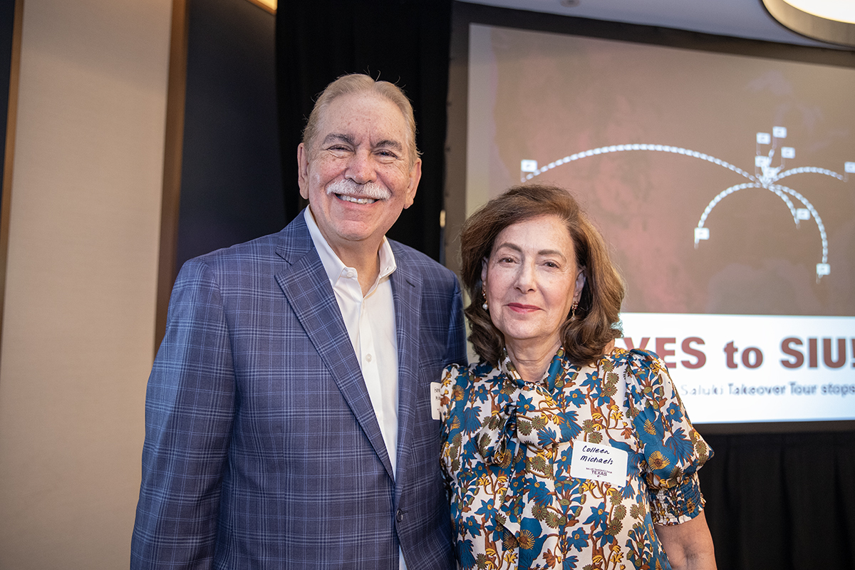 HOUSTON — Southern Illinois University Carbondale announced a $2.1 million gift from alumnus Harvey N. Michaels and his wife, Collie, to establish the Harvey N. Michaels Center for Academic Success and Engagement in the College of Business and Analytics. The announcement was made on the evening of Nov. 13 during the Chancellor’s Reception in Houston, the final stop of the 2nd Annual Saluki Takeover Tour Texas.
